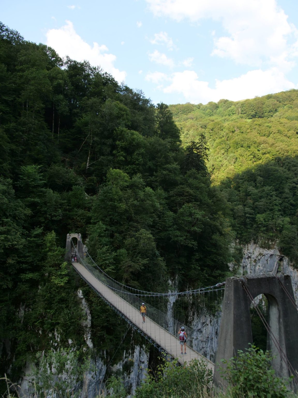 Cette fameuse passerelle a été conçue en 1920 par des italiens pour faciliter l'accès des bûcherons d'une rive à l'autre. Ce pont est suspendu, il a une hauteur d'environ de 200 mètres.