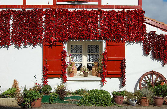 Le village d'Espelette est réputé principalement pour son piment. Et il est vrai qu'il est présent à chaque coin de rue ou sur chaque façade de maison.