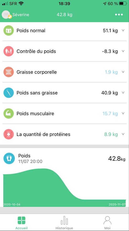 Votre poids est découpé en 17 indicateurs pour mieux vous comprendre avec par exemple: