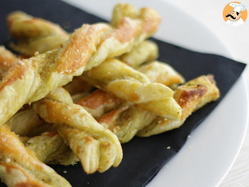 Étalez le pesto sur votre pâte feuilletée, puis saupoudrez de parmesan.
